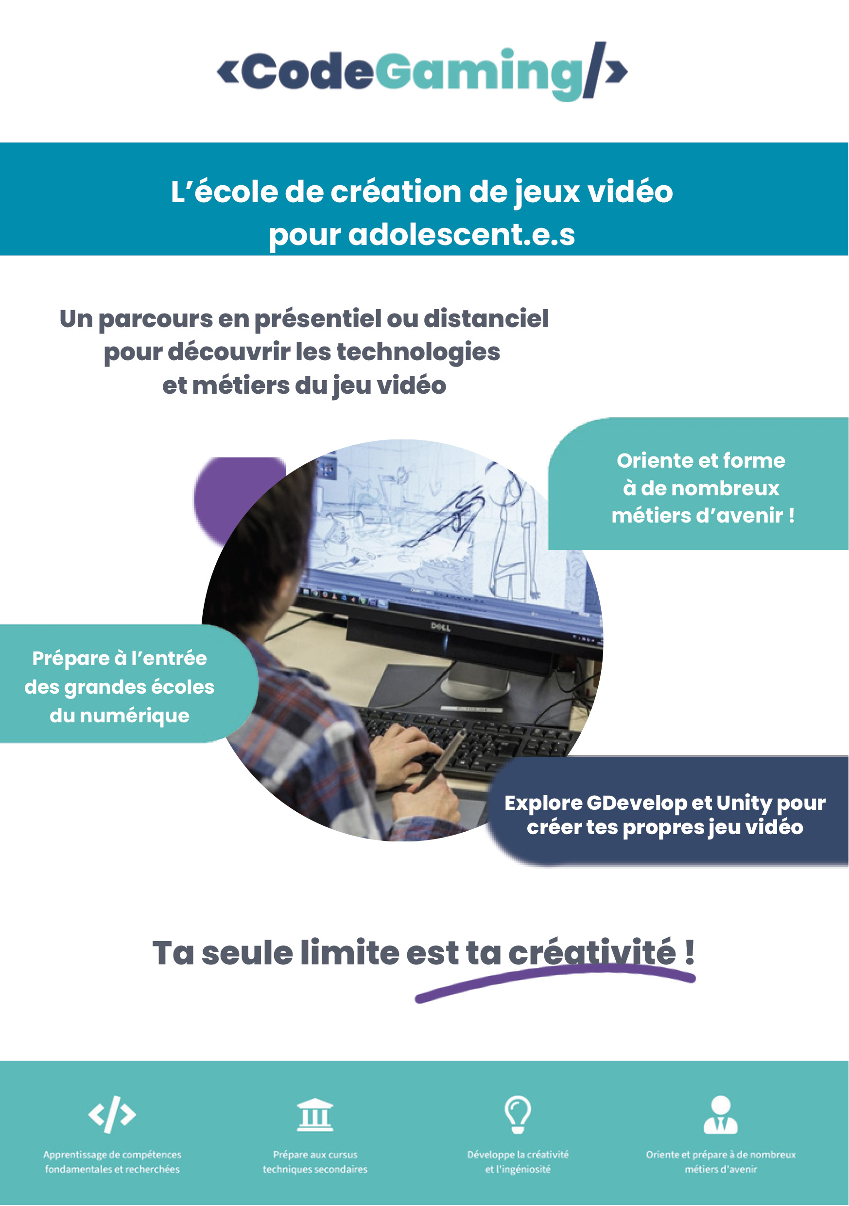 Si vous voulez allez plus loin, que vous êtes passionné(e) d’informatique, de numérique, de code, ou juste curieux/curieuse et motivé(e), alors pourquoi ne pas venir essayer les cours du Garage404 avec Sébastien.