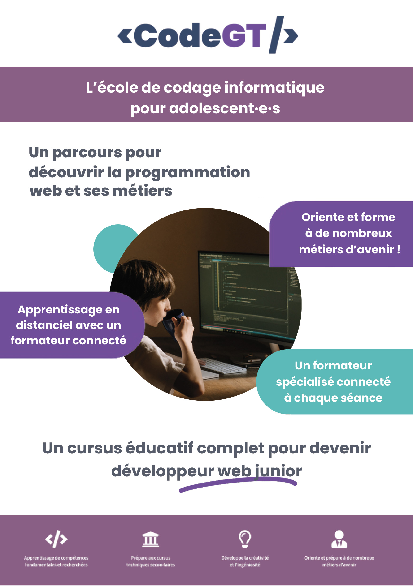 - le mardi 18 novembre de 18h15 à 20h15 pour le Code GT – apprendre les langages du web et créer des sites internet – à partir de 12-13ans.