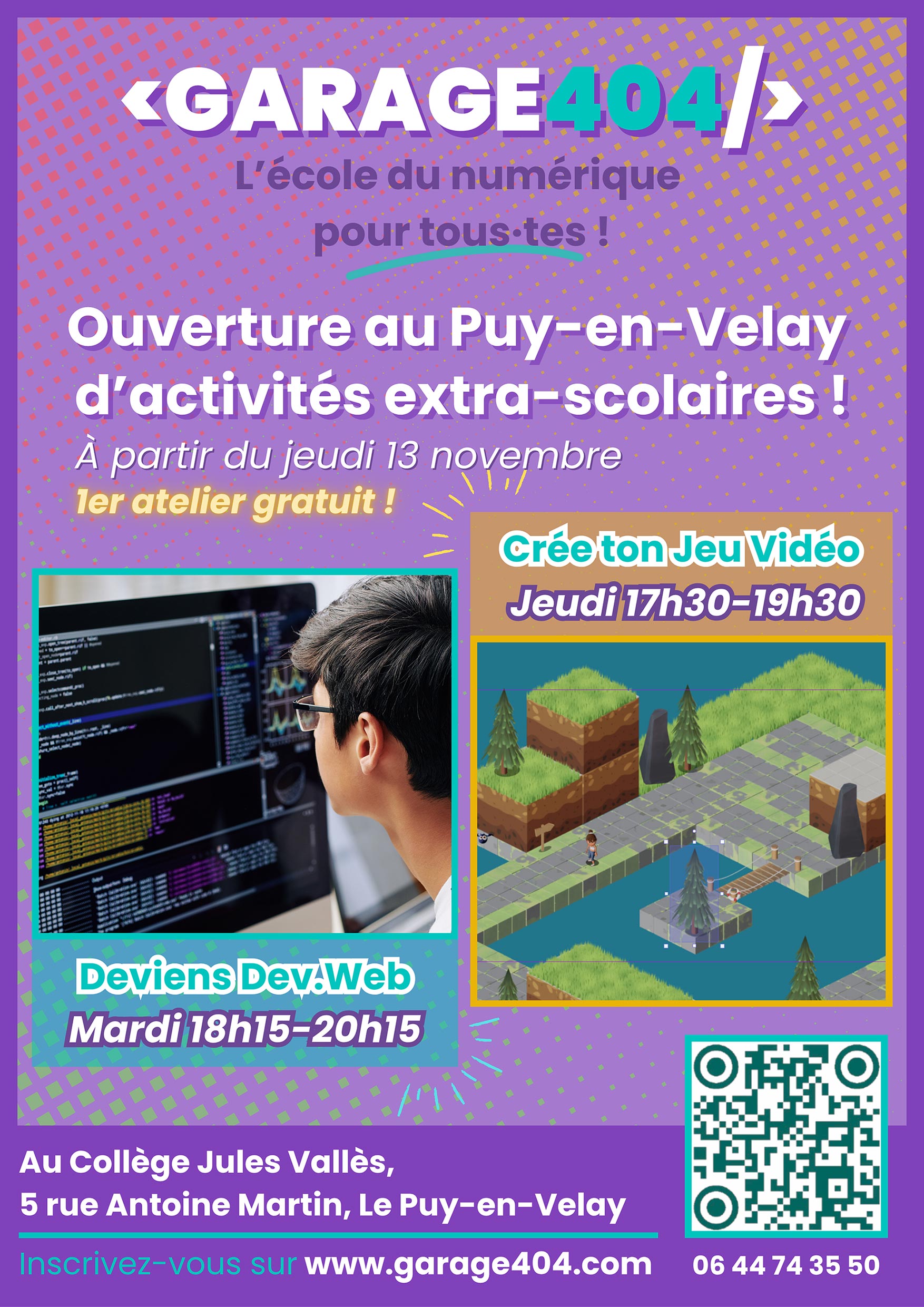 Retrouvez plus d’informations sur les cours proposés par le Garage404 au collège sur les dépliants ci-contre, sur leur site internet ou suivez le Garage404 Le Puy-en-Velay sur Facebook.